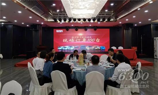 4位渣土车大客户的100台现场签单将会议推上了高潮。随后的抽奖环节更是好礼不断,接连送出了彩电、漢风车模等一系列奖品,一等奖则被忠实客户杭州某市政工程建设公司收入囊中。