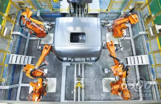 ▲自动焊接机器人。焊装主线采用8台ABB机器人焊接,定位高效,焊点精确可靠