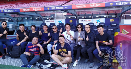 SK润滑油大中华区总裁成宰德先生(左四)、副总经理俞炯在先生(左三)与中国润滑油信息网、新浪体育、腾讯汽车、汽车之家等VIP媒体嘉宾开赛前在巴塞罗那俱乐部主场诺坎普球场合影