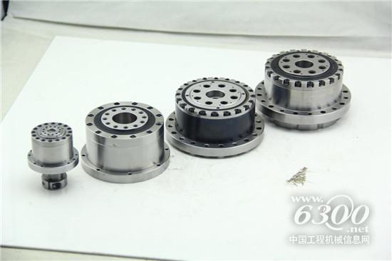 追求节省机械、设备的空间,消减整体成本,实现了大口径中空孔,扁平形状。谐波发生器:椭圆形凸轮的外圈上嵌入薄型的滚珠轴承,整体呈一椭圆形状的零件。轴承的内圈固定于凸轮之上,外圈则介由滚珠弹性变形。一般安装在输入轴上。柔轮:具有薄壁杯型的金属弹性体的零件。杯的开口部外圈刻有齿形。柔轮的底部称为膜,通常安装到输出轴上。刚轮:刚性环状的零件。内侧上刻有与柔轮同样大小的齿形,且比柔轮多2个齿数。一般固定在外壳上。