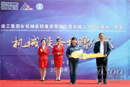 徐工铲运机械事业部党委副书记王颖,受王民董事长委托,将象征美好、筑梦的金钥匙,传递到李太福董事长手中,用这把金钥匙开启信阳涉外职业技术学院更加美好的未来.