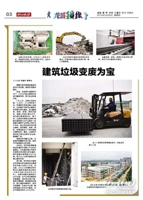 5月23日,《柳州日报》头版和《柳州晚报》三版分别以“建筑垃圾再生利用”“建筑垃圾变废为宝”为题,对柳工开展的柳州市移动式建筑垃圾资源化项目进行了重点宣传报道。