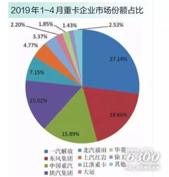 根据中汽协发布的产销数据显示,今年4月,我国重型货车累计销售118757辆,同比下降3.31%。虽然出现微降,但由于去年同期重卡销量处于历史高位,能取得这样的成绩也实属难能可贵。四增六减市场格局未发生太大变化。