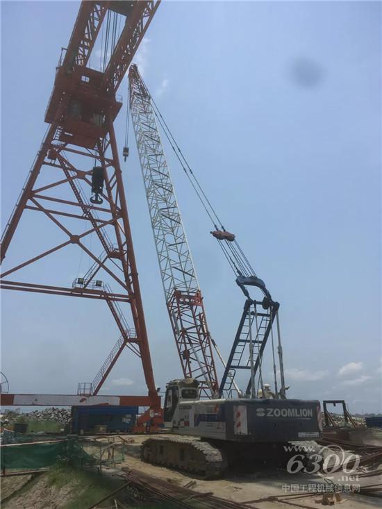 中联重科的十多台大型履带起重机参建淡布隆跨海大桥