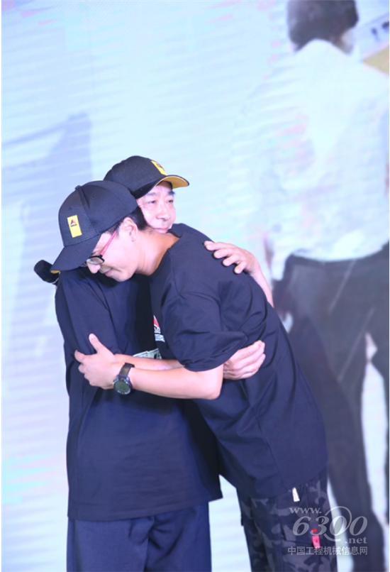 激动拥抱落泪的工程机械父子