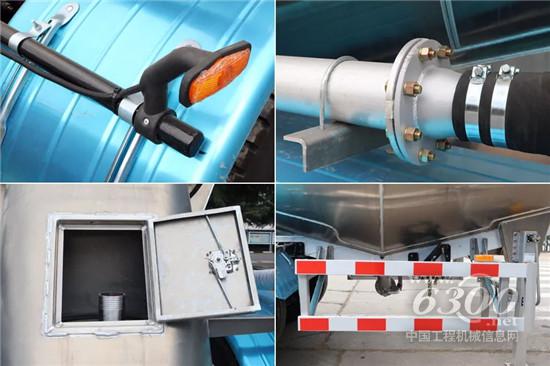 配置优化:采用铝合金罐盖、铝合金支腿、10T轻量化车桥、三片板簧、轻型悬挂、铝合金锻造轮辋、12R22.5轮胎等高端的轻量化配置,整车重量低至4.9吨以下。