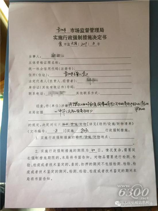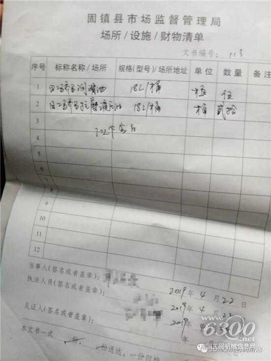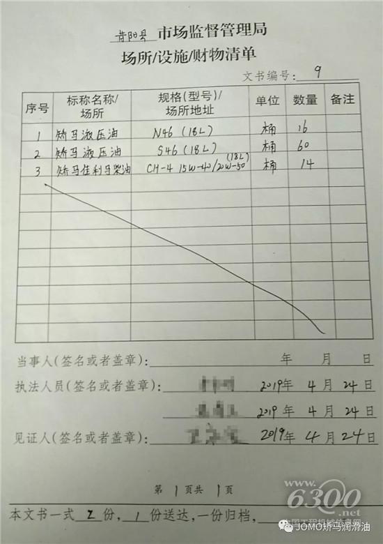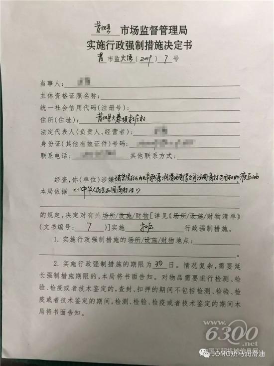 4月24日,山西省昔阳县市场监督管理局执法人员在“三晋源物流”现场发现90桶18L假冒矫马润滑油,根据查获的物流单收货人信息,随后赶到距离县城10公里外的“三都乡露天煤矿”,到名为“老管挖机配件”的店铺进行调查,确定收货人后,向其下达《实施行政强制措施决定书》,并查扣所有假冒油品。