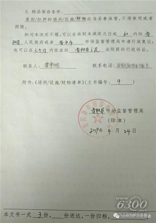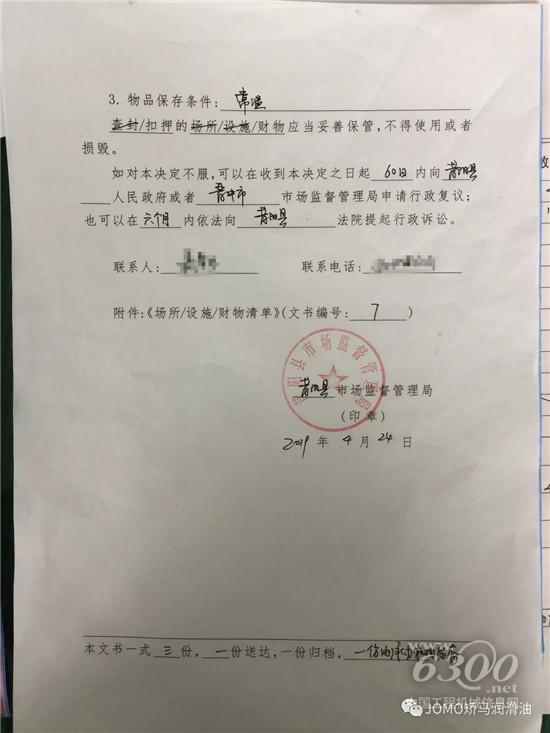 在3月公布的打假通报中,关于河南郑州查扣仿冒品“浙石矫马”润滑油一案,5月7日,郑州市管城回族区市场监督管理局向我司传回《案件处理结果告知书》