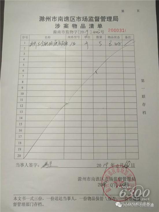 4月24日,公司打假人员在安徽巡查市场时发现位于滁州市名为“王飞液压油管加工”、“加工油管”的两家店铺销售假冒矫马润滑油,随后向滁州市南谯区市场监督管理局进行举报,执法人员随即查处在店铺中销售的12桶18L假冒油品。