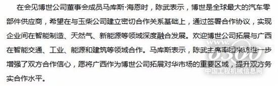 自治区主席陈武对玉柴与博世等国际合作寄予厚望: