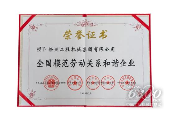 徐工集团获“全国模范劳动关系和谐企业”荣誉称号