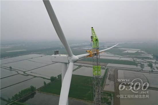 中联重科ZCC9800W履带起重机在江苏扬州成功吊装了首台轮毂高度为152米的V120-2.2 MW风电机组,创造了中国风电行业又一新高度和新纪录。