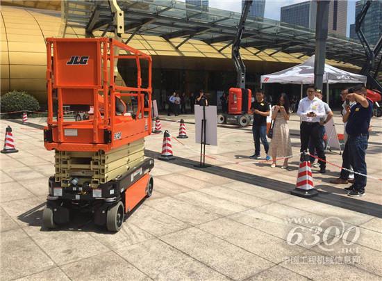​图为捷尔杰在IPAF亚洲峰会现场演示远程遥控高空作业平台的操作