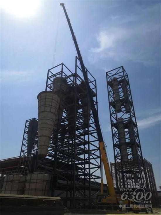 在江西“十三五”规划重大工程项目新余市分宜县发电厂施工现场,XCA550吊起88吨的水循环,发电机组等设备,“力拔山兮气盖世”。