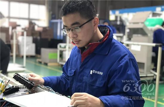 吴辉,是智能技术公司制造部的一名装配电工、技术能手。作为一名90后,吴辉乍一看还略显青涩,很难令人联想到,年轻的他已经获得了劳模称号。他手上的活有多厉害?4.0系统摊铺机是中联重科的新产品,相比以前的机械,这一系列产品零部件呈模块化,集成度很高。像控制器模块,走线的空间比较少,每一股有50多根线,他装配出来的产品,密密匝匝的线整整齐齐捆成扎,各种电线仿佛被他施了魔法:每一股线的长度一致、弯曲的弧度相当。
