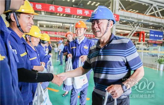 “徐工广大职工朋友在盛夏酷暑仍然坚守在工作一线,为徐工的发展、徐州的发展做出贡献,你们辛苦了!谢谢你们!”周铁根与员工一一握手,对大家战高温、斗酷暑,大干快干的精神表示感谢。