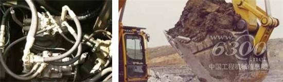 临工E6500F的液压系统选用双回转马达串联驱动的工作形式,回转力量大、回转速度快,生产率高。