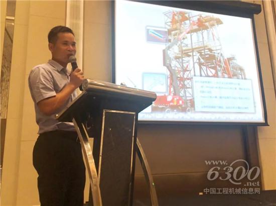 ▲星邦重工产品经理蔡忠贵先生介绍星邦臂车优势