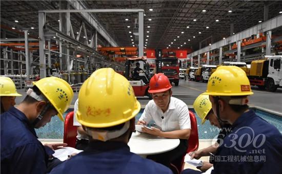 记者在厂房里看到,泵送装配生产线上一派繁忙景象。每天晚上,有近200人作业,通过智能系统派工,工作时间从晚上8点开始。一条泵送装配线有10个工位,每完成一道工序,混凝土泵车便由传送带运至下一个工位。