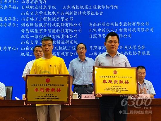 除了对获奖作品以及优秀团队、优秀教师的表彰外,大会对山东临工连续三年冠名以及在过去三届大赛中对大赛的各方面支持,和对临工组高校产品设计方面给予的支持,表示了充分的肯定,并为山东临工颁发了“卓越贡献奖”奖牌以示感谢与对临工重视创新驱动、人才建设的肯定。