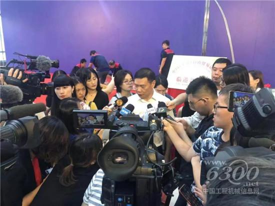 作为新片区的企业代表,三一重机董事长俞宏福参加揭牌仪式,并现场接受媒体采访。