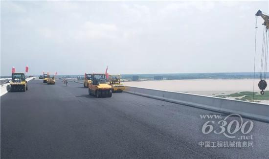 官渡黄河大桥施工难度较高,特别是桥面摊铺,要求施工高密实性、高平整性及高使用寿命,这些高标准对于施工设备而言极为严苛。为了保证桥面的使用寿命与摊铺质量,施工方使用了两台三一摊铺机进行双机联铺。