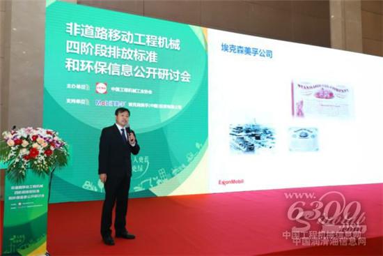 埃克森美孚(中国)投资有限公司北亚润滑油业务总工程师陈思轩先生在非道路移动工程机械四阶段排放标准和环保信息公开研讨会上致辞