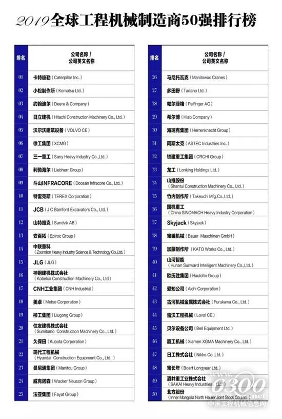 峰会由中国工程机械工业协会(CCMA)、设备制造商协会(AEM)、韩国建筑设备制造商协会(KOCEMA)主办,发布2019全球工程机械制造商50强、2019中国工程机械产业影响力100人等10余份榜单。