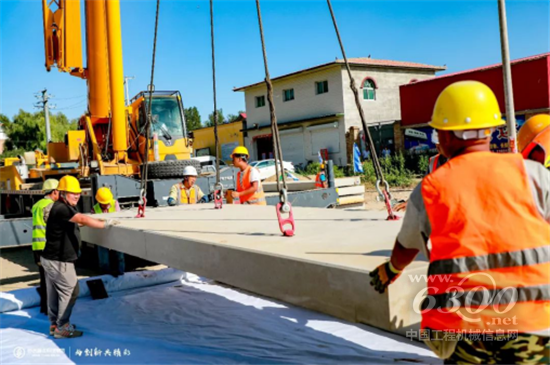 该道路面板均采用预制构件进行装配式施工,所有的预制构件全部采用于恒远鑫达参建的装配式项目部徐水厂区,制作的产品直接用于现场装配。前十天,面对场地坑洼、吊车活动范围有限、进场不易等困难,恒远鑫达攻坚克难,确立“高标准,零误差,稳推进”目标,扎实稳步推进建设工作,最终参建道路于8月29日顺利完工。
