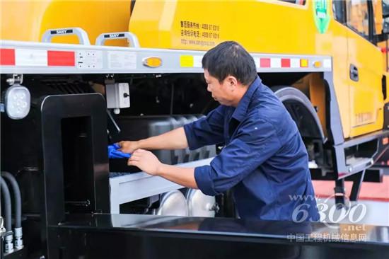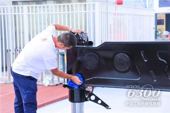 9月4日正午,三一员工在烈日下擦拭设备,只为将最好的观展体验带给现场观众。