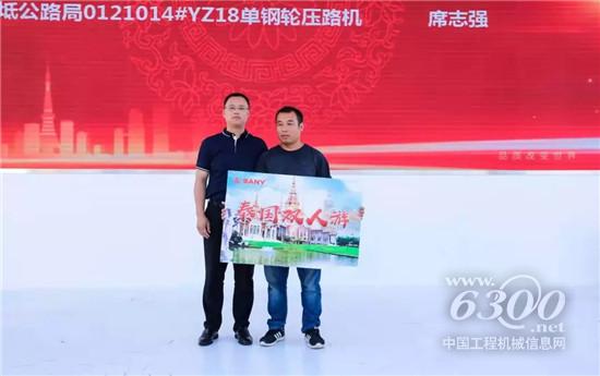来自天津的客户席志强先生凭借购置的三一单钢轮压路机在现场将特等奖泰国双人游抱回家。