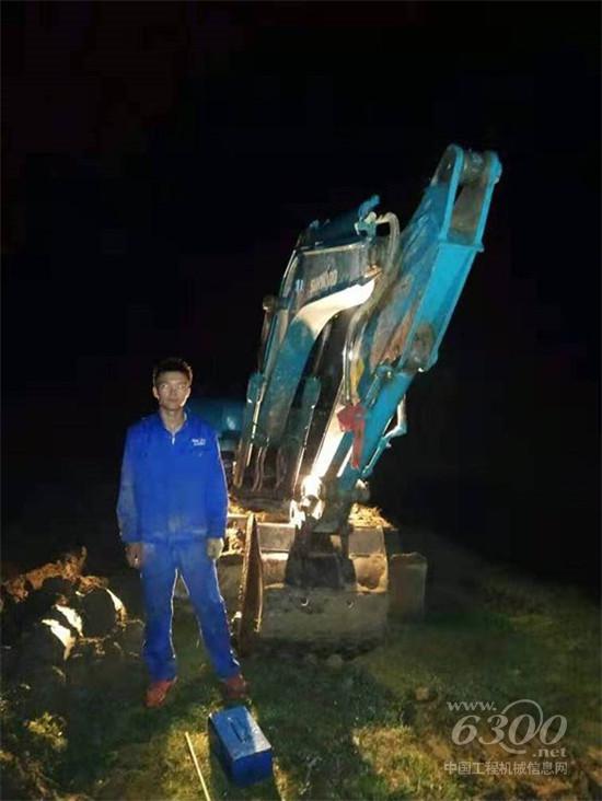 赵工顶着瓢泼大雨、行走在崎岖的山间,赶到工地时已是下午4点。当挖机从河里顺利吊出来后,看着布满泥沙的挖机,赵工没有嫌弃,心里只有一个念头,“这个事不能拖,处理好故障要紧,不然客户损失会更大”。于是便冒着大雨着手进行检修,尽管已是深夜,但赵工仍有条不紊地进行着自己的工作。等挖机能正常启动后,已是凌晨1点多钟,此时赵工的衣服已全部湿透。