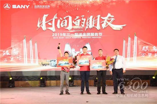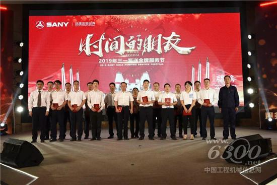 活动现场,2019年“时间的朋友”-三一泵送金牌服务节功勋设备及功勋客户线上评选结果荣耀揭晓。在鲜花与奖杯簇拥下,受奖客户与三一领导合影留念,记录下这一荣耀时刻。