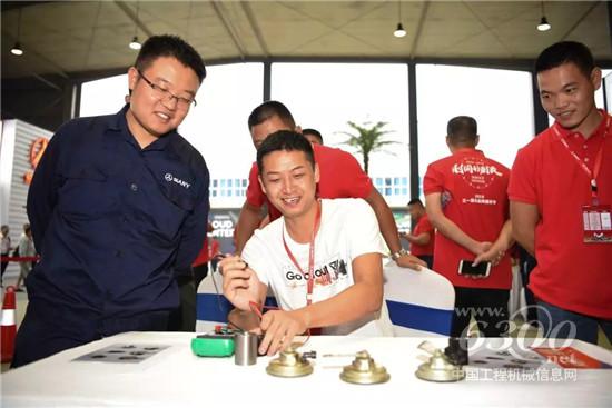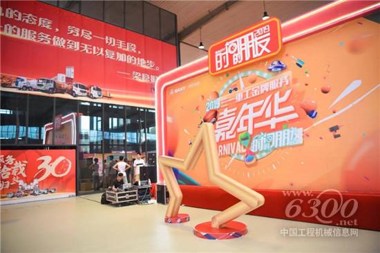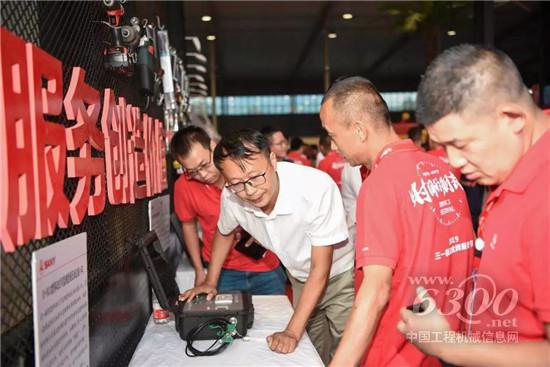在三一长沙产业园D1街区内,金牌服务节嘉年华活动正火热进行。现场共设服务工程车风采区、服务工程师装备区、服务配件展示区、服务科技展示区、竞技pk区、娱乐互动区、休息区等七大分区。