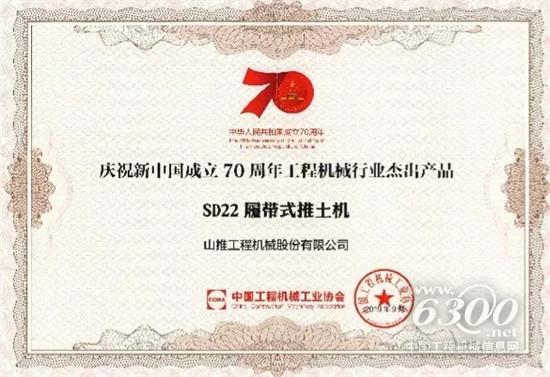 为庆祝新中国成立70周年,中国工程机械行业协会组织了行业系列成就评选。山推工程机械股份有限公司荣获“中国工程机械行业影响力企业”,推土机SD16、SD22荣获“行业杰出产品”等多项荣誉。