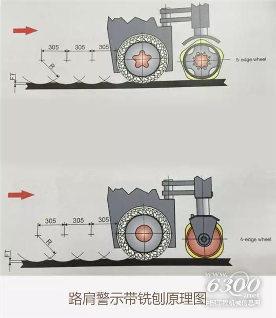 徐工XM353铣刨机装配隆声带铣刨轮胎,进行隆声带铣刨施工。在施工现场我们可以看到,XM353铣刨机在隆声带轮胎的作用下,铣刨鼓产生水平和垂直方向的复合运动,通过这种运动可以铣刨出间隔一致排列规则的弧形凹槽,这种周期性的复合运动可以使加工出的隆声带尺寸和间隔尺寸统一,可以随时施工,而不局限于路肩的施工时间,简单方便。