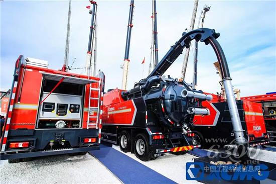 在徐工展区,多功能抢险救援车、抛沙灭火车、挖掘抽吸车、救援器材车等5款全新面孔的应急救援装备吸引了众多参观者和参展商的好奇目光。