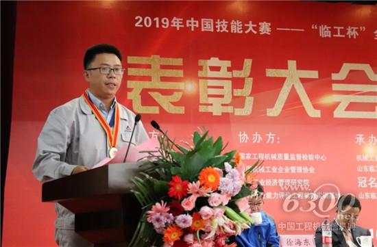 山东临工参赛选手祝令新荣获本次大赛决赛综合成绩第一名