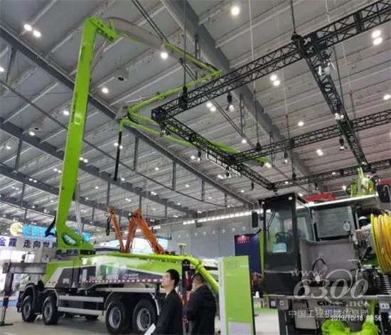 ▲中联重科明星产品56米高精高效泵车亮相博览会