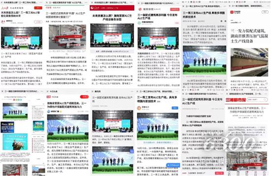 人民日报、人民网、中新社、腾讯新闻、凤凰网、新浪网、百度新闻、今日头条、湖南日报、潇湘晨报、长沙晚报、三湘都市报等多家媒体对三一ALC生产线发布会进行了报道。