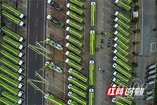 ▲中联重科麓谷工业园展示坪上,泵车绿色的臂架格外惹眼