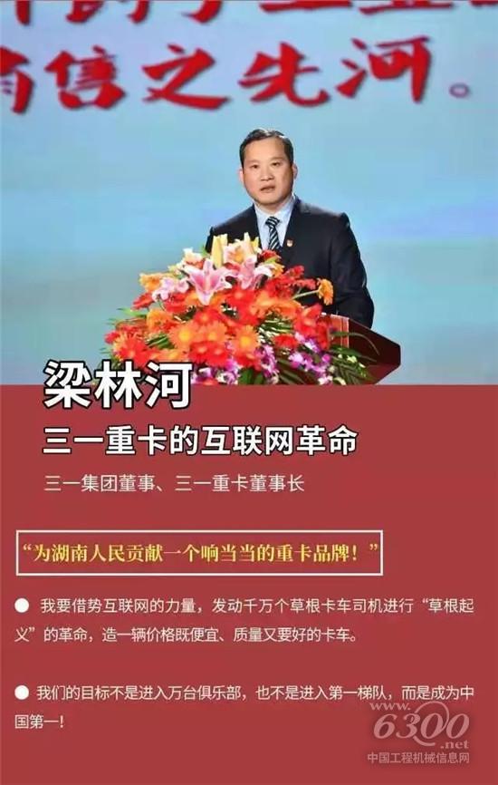 在长沙市委、市政府的支持和关怀下,梁林河运用互联网思维,和卡车司机一起设计他们最喜爱的卡车,并通过模式创新把成本降到最低,使同配置的车型比竞争对手的价格低20%多,让客户真正得到实惠。 三一重卡开创了工业品线上销售的先河,开创了全新的“互联网+卡车”的模式。去年3月18日,在网上预售500台卡车,只用了64秒钟;去年5月18日,新产品上市,1000台卡车56秒钟被抢购完;今年10月10日,第二款新品上市,52秒钟2000台被抢购一空。有人评价:“三一卖重卡比卖包子还快”。 据悉,三一重卡仅500马力牵引车的一款车型,上市一年内销量超过12,000台,是近十年来进入“重卡万台俱乐部”所花费时间最短的新成员。 “我们的目标不是1万台,也不是10万台,而是30万台;不是进入万台俱乐部,也不是进入第一梯队,而是成为中国第一,为湖南人民贡献一个响当当的重卡品牌。”梁林河豪迈表示。 梁林河的报告振奋人心,激起现场阵阵掌声。三一重卡的崛起,迅速填补了湖南在重卡领域的空白,圆了湖南人民的“重卡梦”。