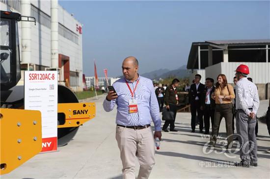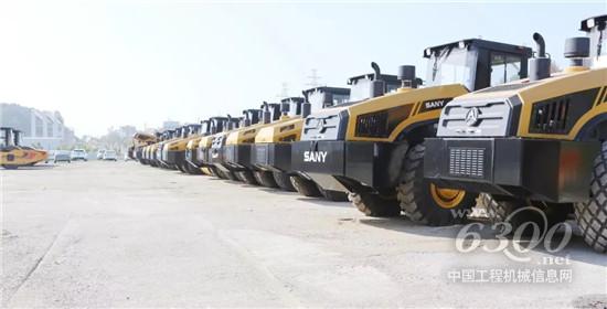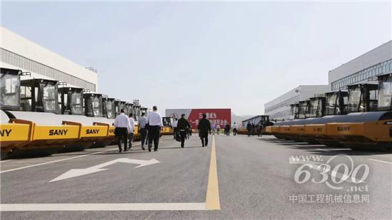 车辆刚刚停稳,来宾们的目光便被7台全新的三一路面机械设备所吸引,争相打卡拍照。