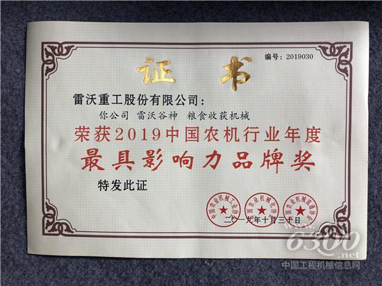 产品是品牌的基石,多年来雷沃阿波斯产品一直深受用户认可,特别是雷沃谷神轮式谷物收割机、雷沃谷神自走式玉米收割机连续多年位居销量第一,在本次评选中,雷沃谷神获评最具影响力品牌奖。