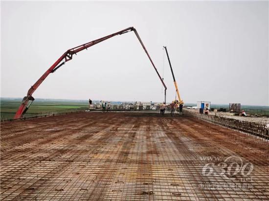 项目施工过程中,混凝土浇筑是最为重要的工作之一。由于黄河滩地质松软、工程混凝土标号大,加之适逢黄河汛期影响施工等一系列问题,设备的稳定和可靠成为影响项目进程的关键因素。在施工方的精挑细选之下,最终选择了由三一泵车完成浇筑任务。