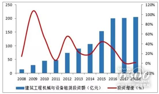 国内建筑工程机械与设备租赁行业发展较晚,但投资规模一直逐步增大。