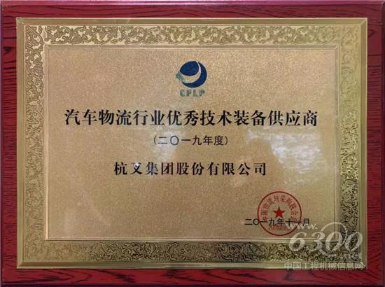 杭叉集团获得了中国物流与采购联合会汽车物流分会颁发的“2019年度汽车物流行业优秀技术装备供应商”称号,以表彰近年来在该领域做出的贡献。