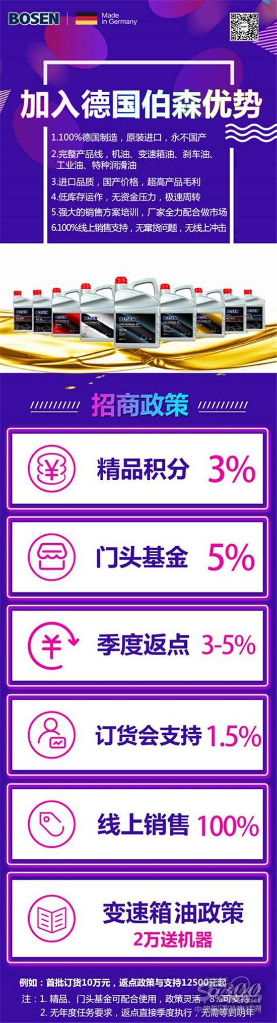 作为流淌于汽车发动机的“血液”,润滑油行业既是汽车工业和国民经济的重要配套支撑,也是中国主动拥抱世界、与全球行业共赢的时代缩影。在改革开放以来40年风雨兼程中,中国取得了举世瞩目的伟大成就,一跃成为世界第二大经济体、第一大汽车产销大国、以及仅次于北美、欧洲的全球第三大汽车后市场,为世界先进水平与中国市场对接提供宝贵机会,是名副其实的“机遇之国”。近年来,随着中国汽车后市场消费升级,新一代年轻车主崛起,行业正迎来品牌化、个性化、服务化新趋势,成为各大渠道经销商力争的市场蓝海。在此背景之下,德国伯森润滑油以品质实力为根基,以原装进口、强大的产品线深度、主打新零售方案创新为品牌主打号召,撬动万亿级品牌蓝海,服务行业时代升级。