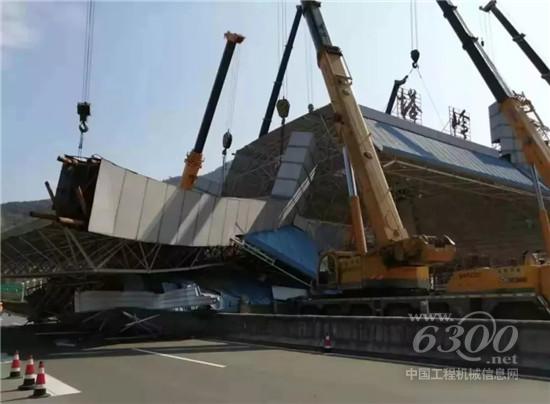 经高速公路运营单位多方多次的研究讨论,最后决定对高速公路进行临时交通管制,借助起重设备的力量支撑,对收费大棚进行整体切割拆除。
