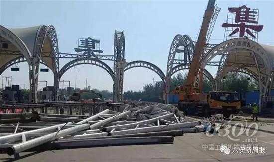 在高效率完成收费站破拆工作后,各类起重设备又火速投入到ETC门架系统安装工程中。